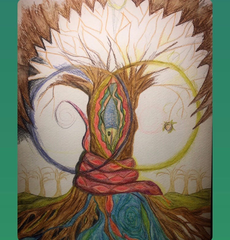 This word jam came while pondering the utter intensity of bloom and berry that spreads across the land at this time of year in the Northern hemisphere - this and the various posts, artwork, and podcasts that rose (through the online algorithms) to my attention! My drawing above and my recent journey with my father, witnessing the cycles of giving and receiving between elder and youth, dying and growing, and the story that inspired it also fed this creative stream. That’s how it goes. This is the Solstice algorythm